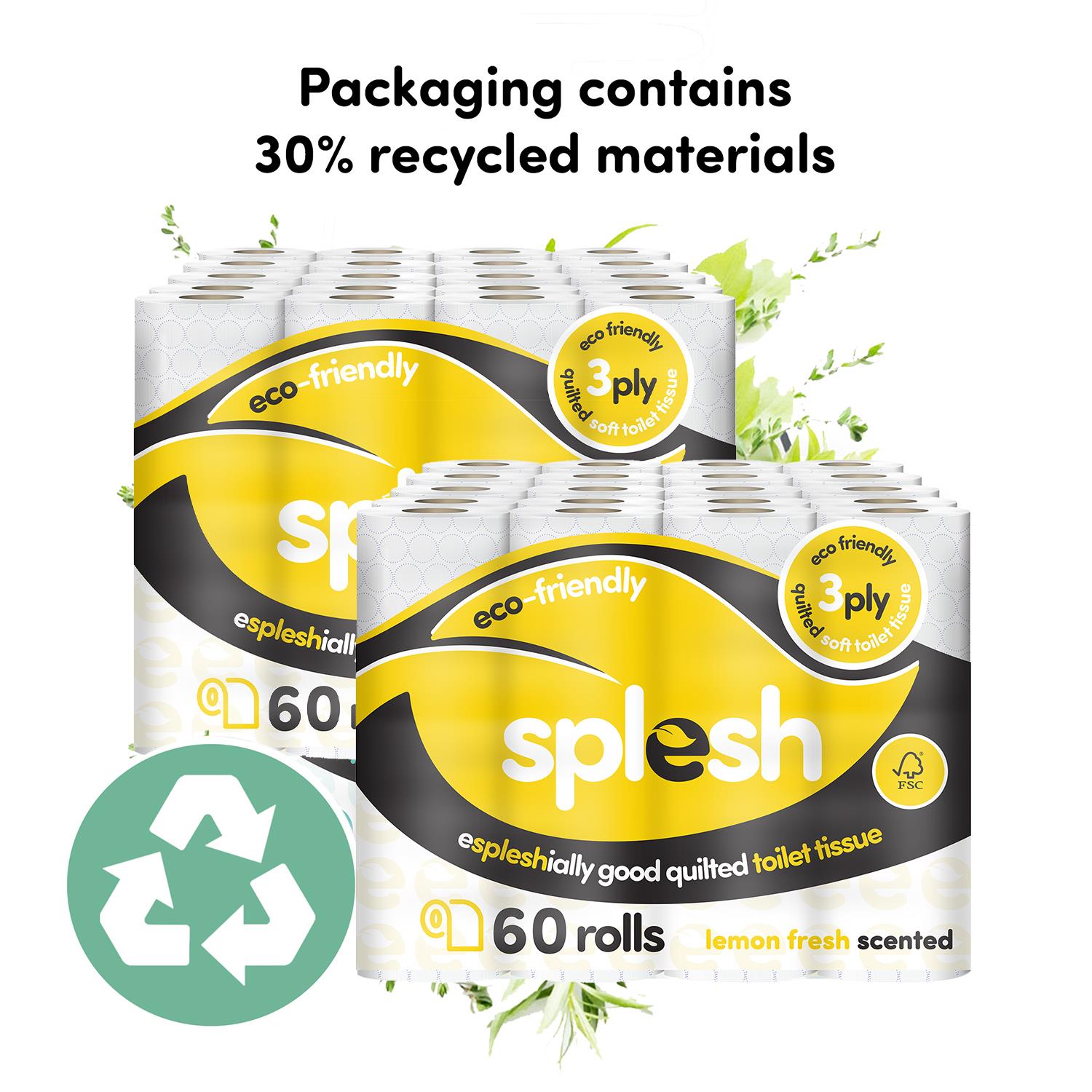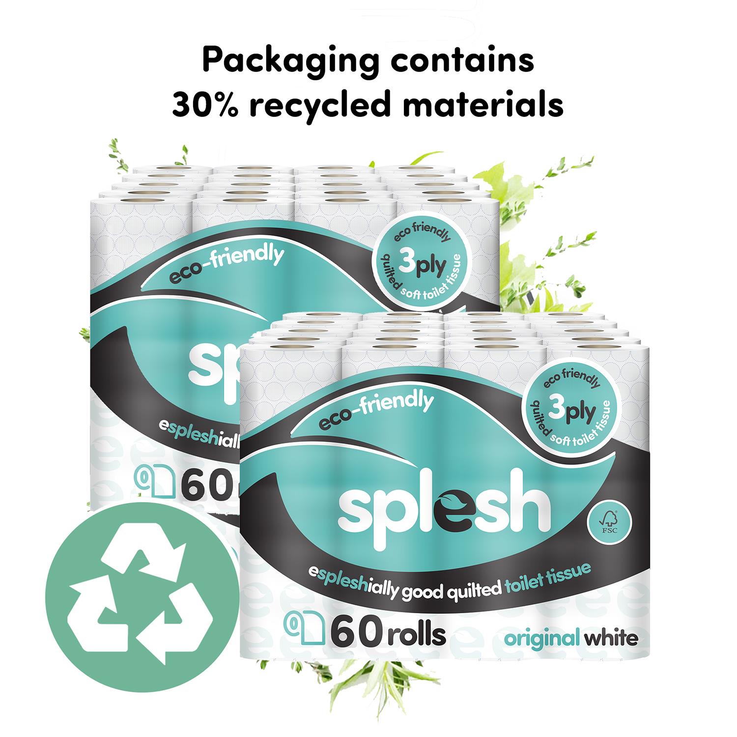 - ECO FRIENDLY: Splesh toilet roll is now fully FSC certified to protect forest diversity & is made from sustainably sourced virgin pulp