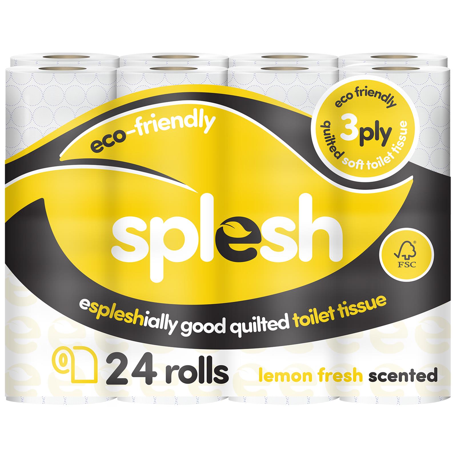 This Splesh toilet roll bulk buy contains 24 rolls of quilted luxury White, lemon, lavender or Aloe Vera 3-ply toilet rolls. These luxury toilet rolls come with a touch of scented luxury. The toilet paper is created with micro-impressions and quilted for a touch of luxury. The 3-ply toilet tissue paper is made with a touch of cotton so it is ultra-soft and gentle, feeling smooth against your skin. With the promise of 3 layers, Splesh was designed to not only be stronger and more durable but also provide maximum absorption.